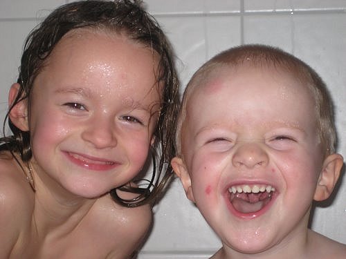 Danach gings für beide ab in die Wnne. Da haben wir immer tüchtig Spaß und Mama muss aufpassen, dass das Bad nicht schwimmt *hihi*.