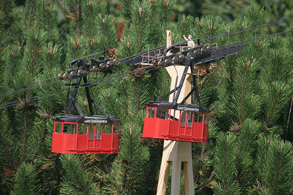 1924 wurde die Schwebebahn in Oberwiesenthal/Erzgebirge erbaut. Bis zum 1215 m hohen Fichtelberg überwindet sie auf einer Strecke von 1.200 m einen Höhenunterschied von 300 m.